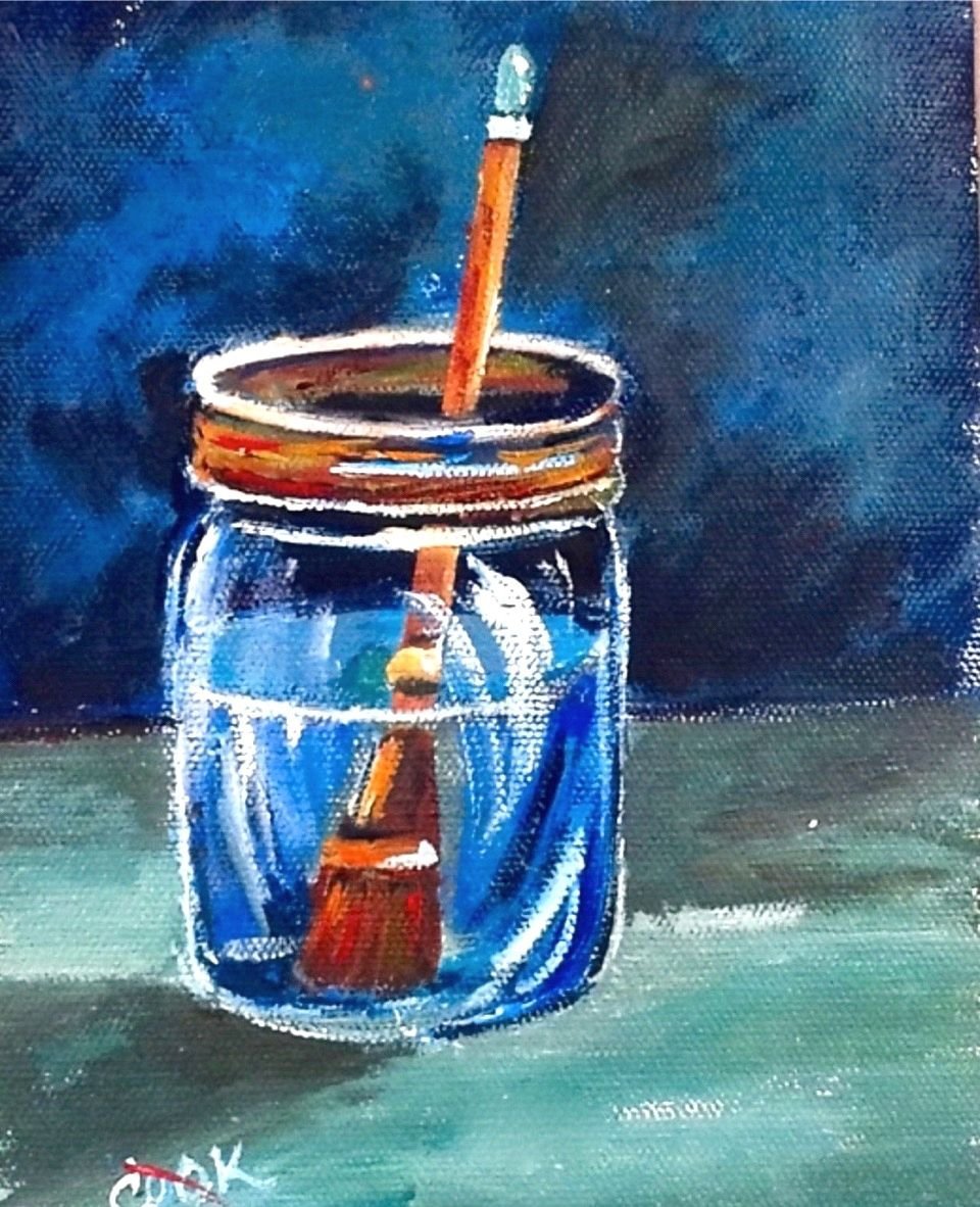 Банка с водой акварелью