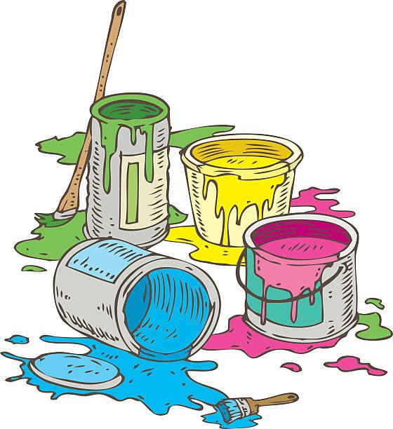 Иллюстрация банки с краской и кистями