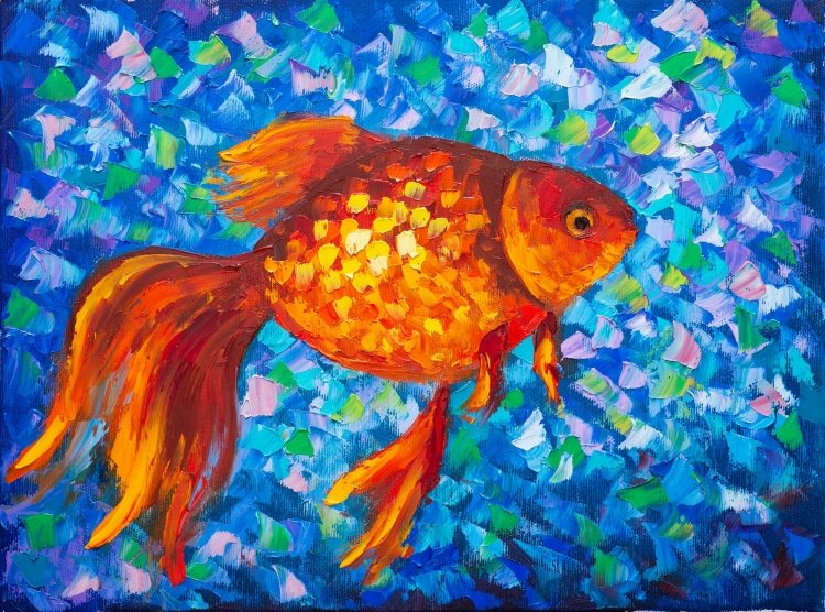 Золотая рыбка красками