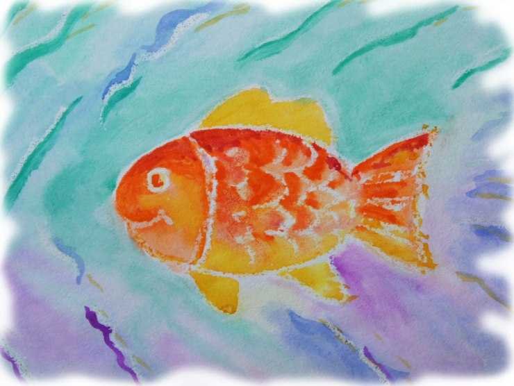 Золотая рыбка акварель восковые мелки