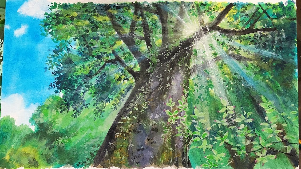 Летний пейзаж гуашью