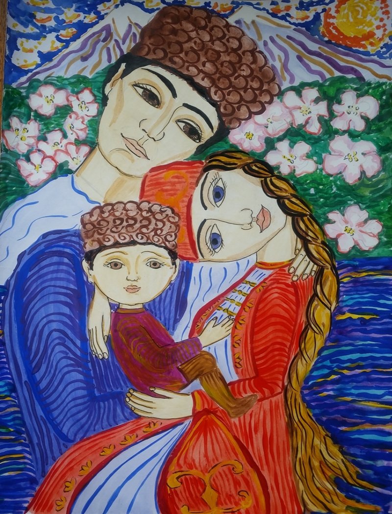 Рисунок на тему семья гуашью