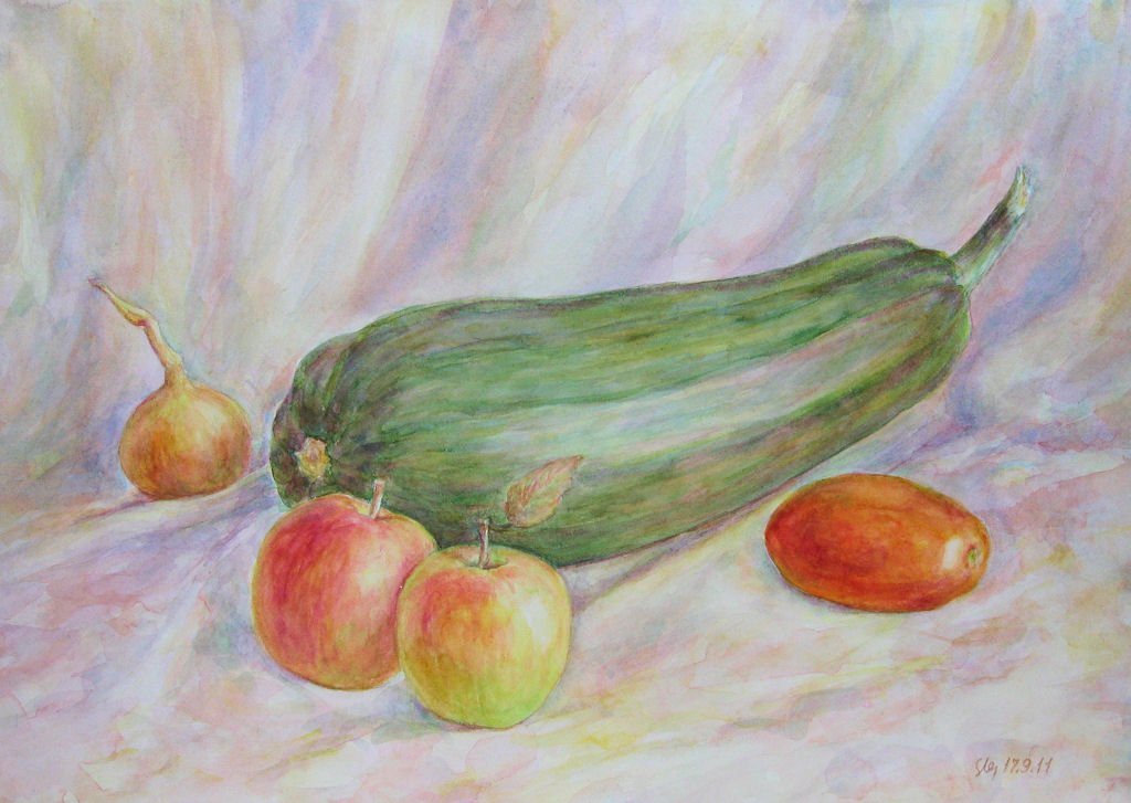 Натюрморт из овощей и фруктов для детей поэтапное рисование