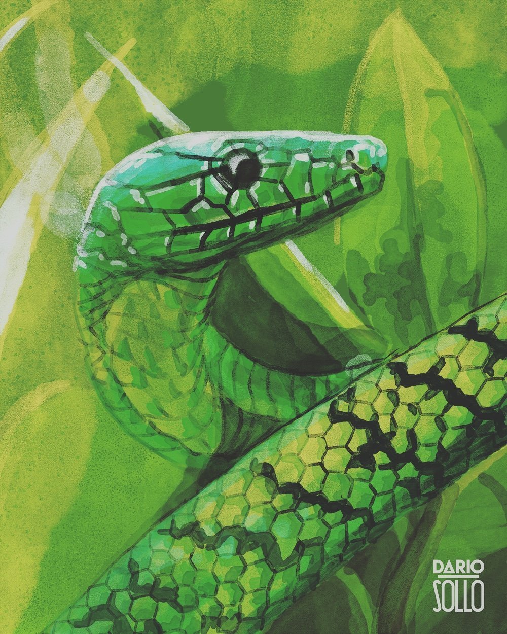 Змея иллюстрация акварель