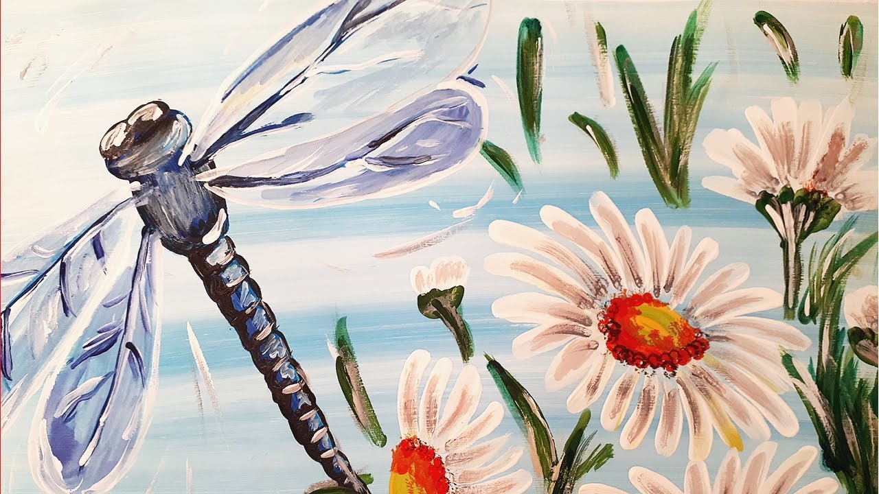 Стрекоза акриловыми красками