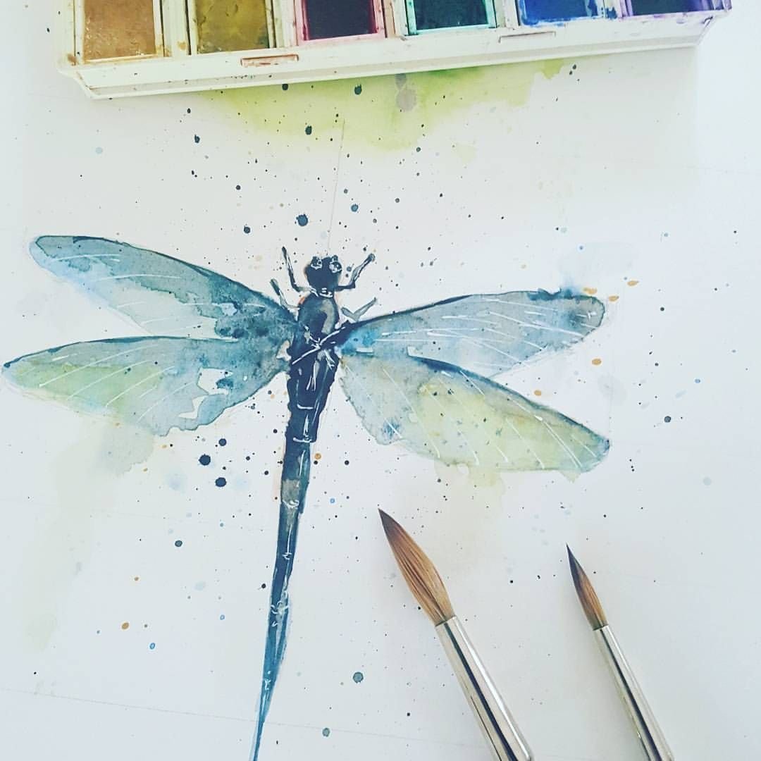 Стрекоза акварель
