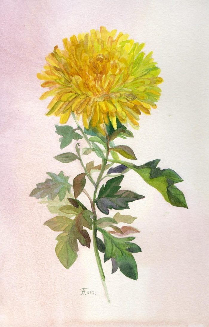 Хризантема рисование акварелью