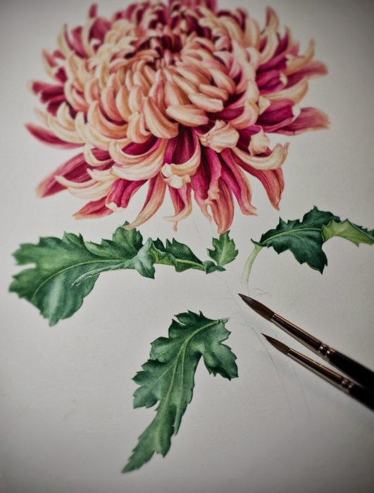 Ботаническая живопись хризантемы