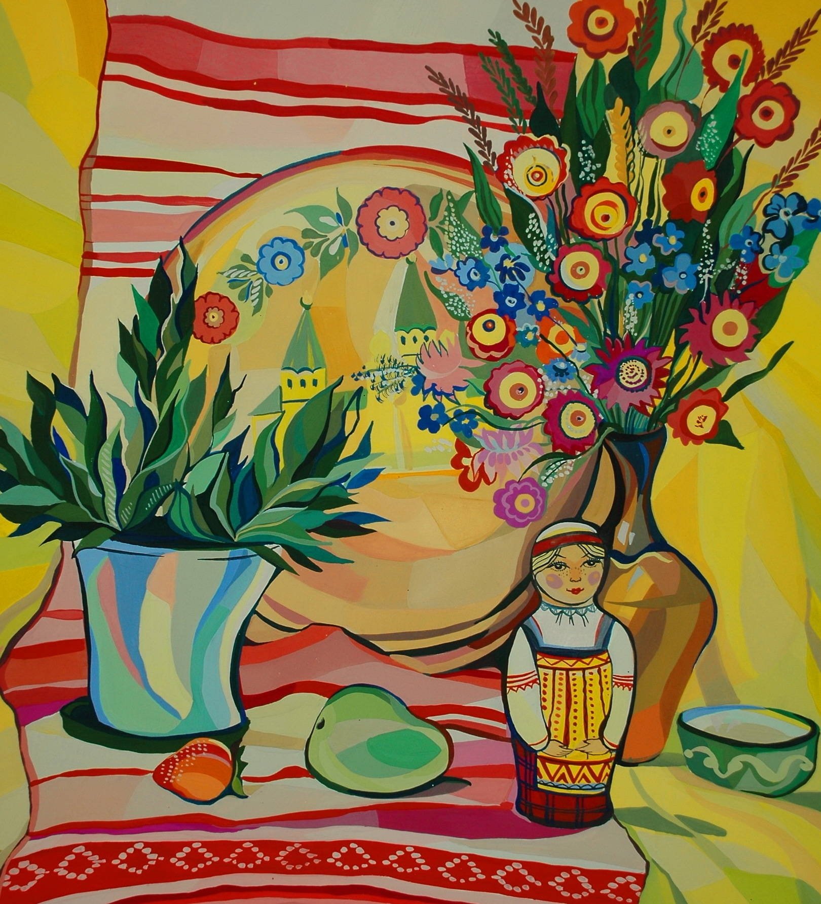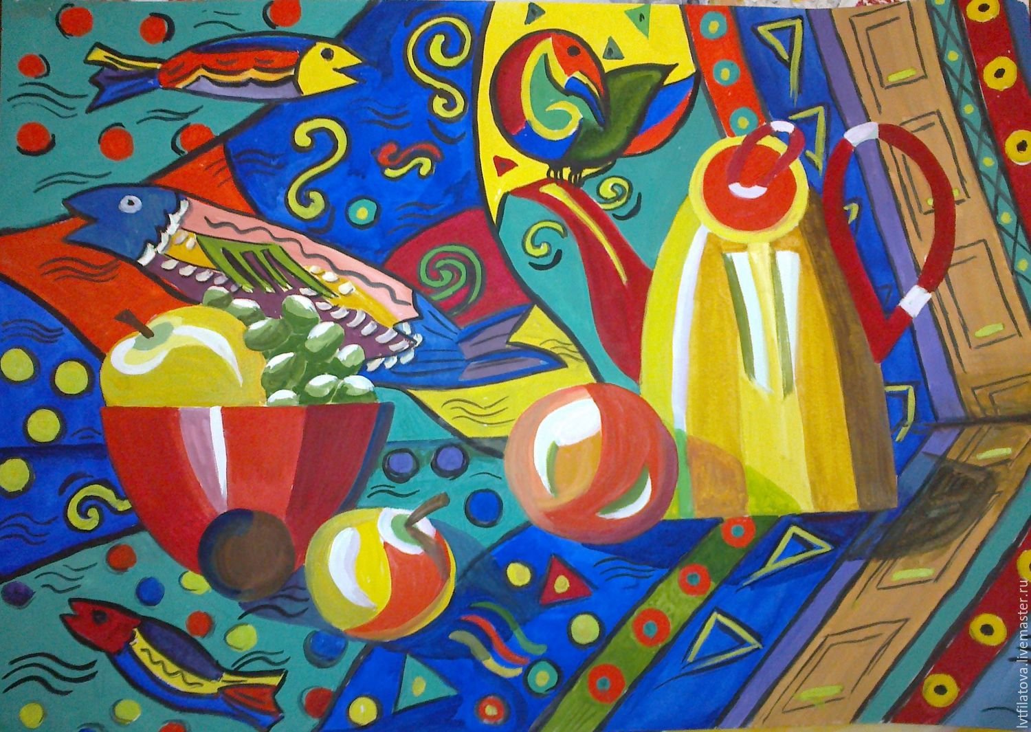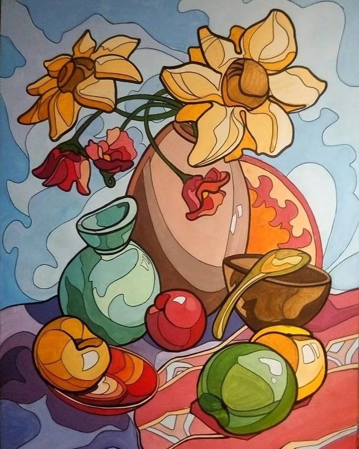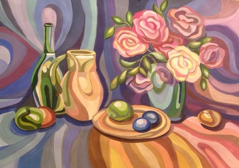 Живопись натюрморт стилизация гуашь