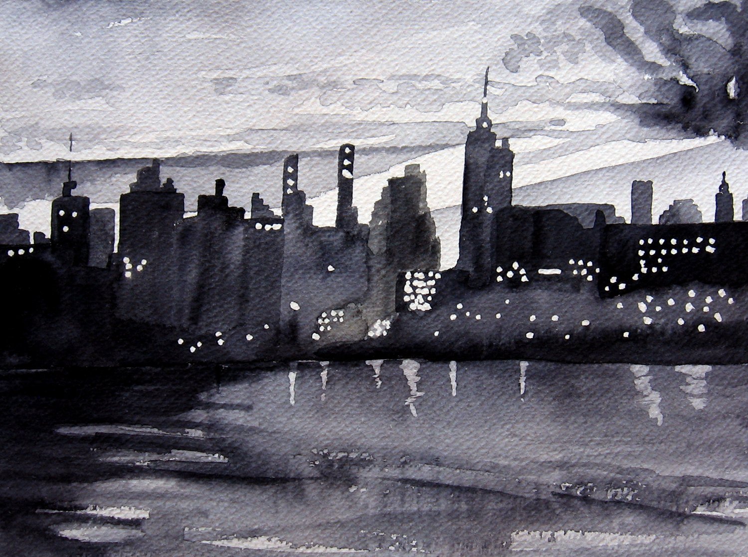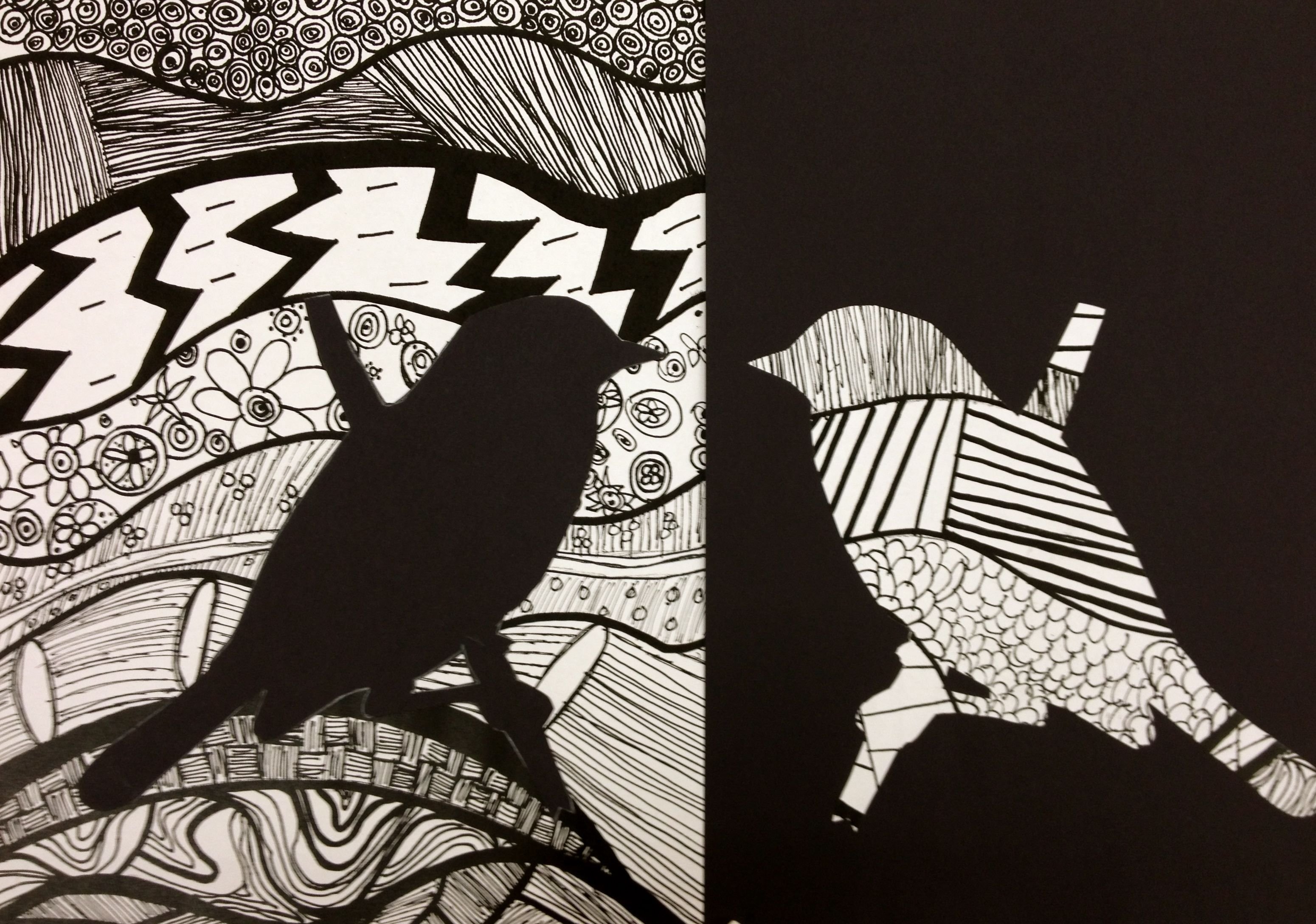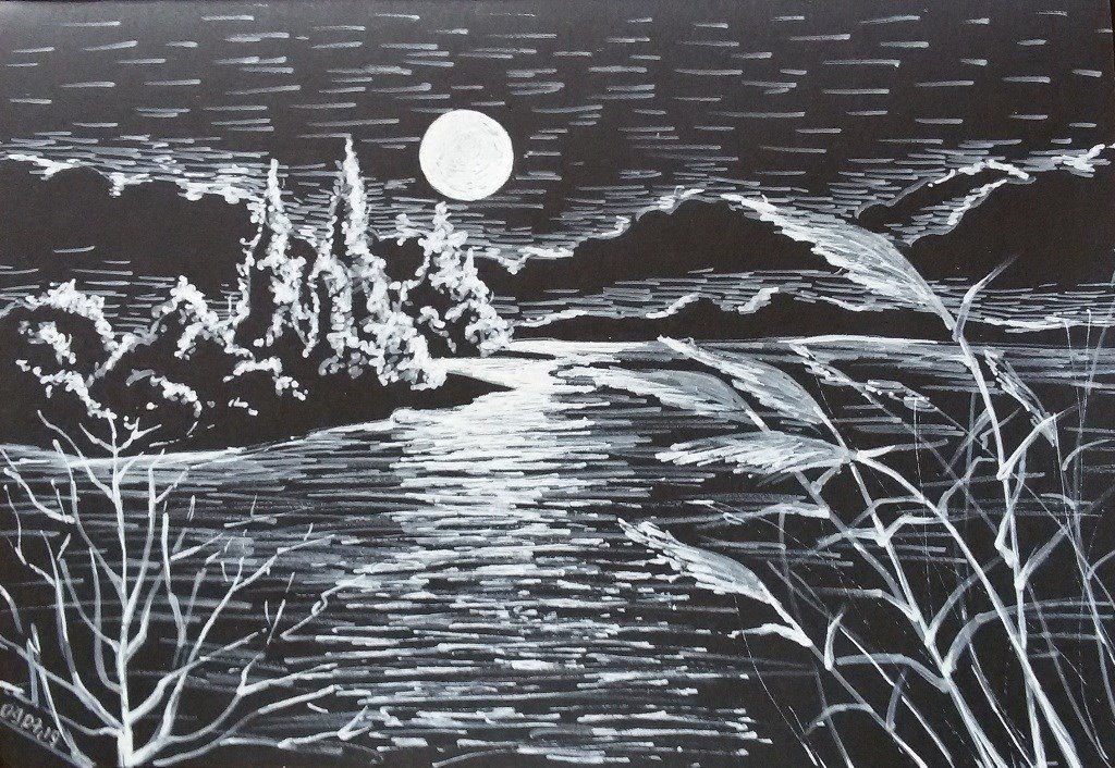 Черно-белая Графика гуашью