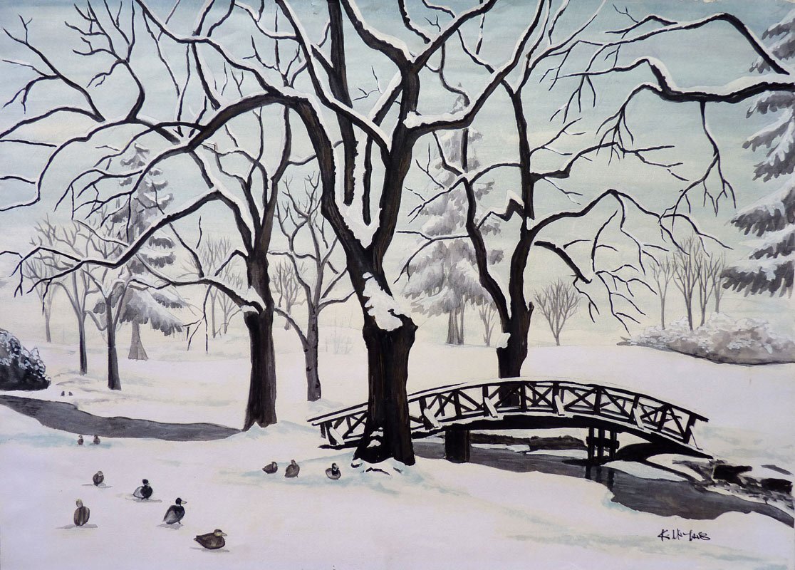 Зимний пейзаж в графике