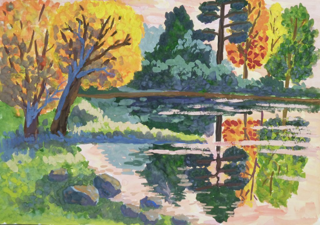 Пейзаж гуашью для художественной школы