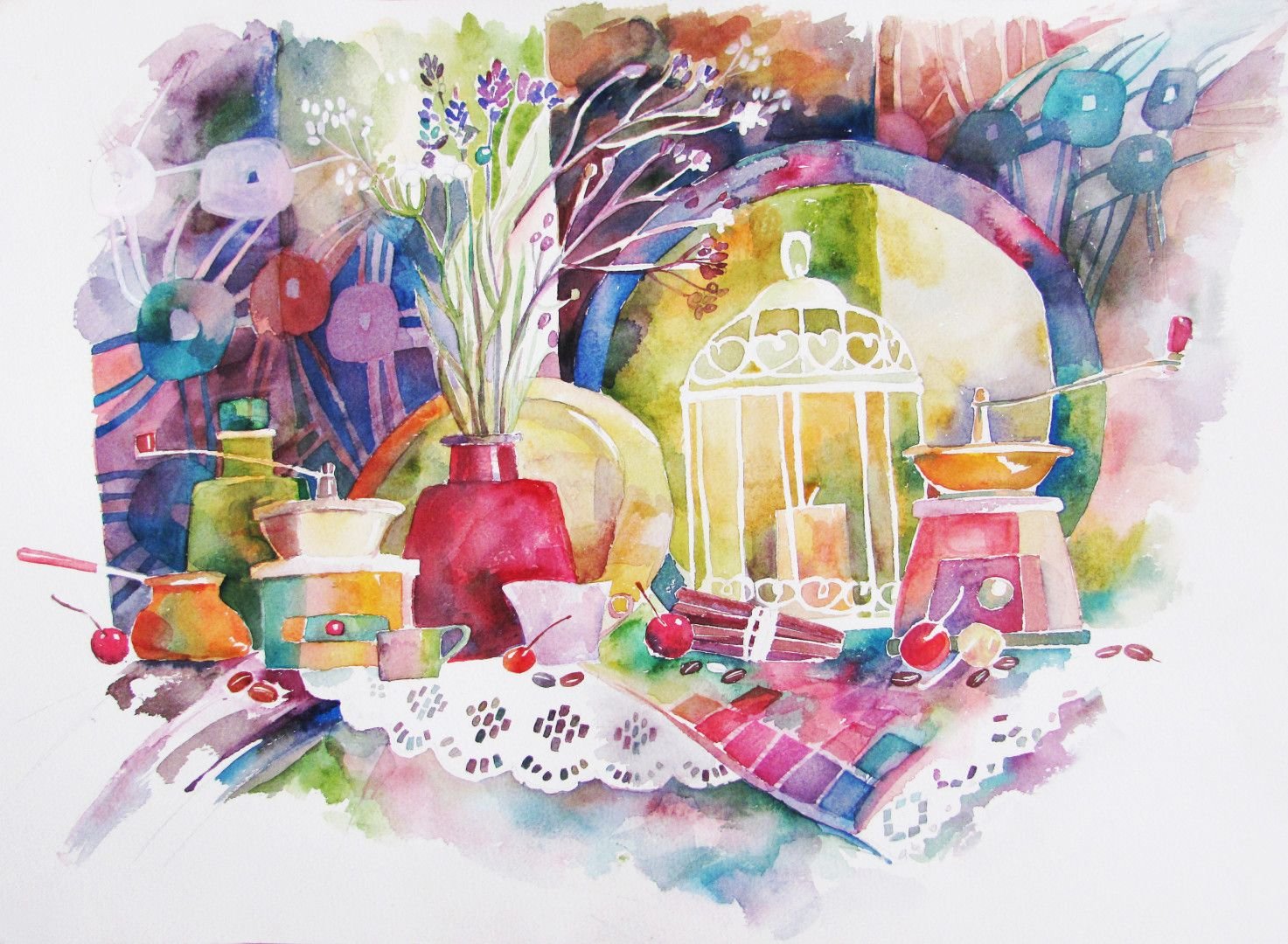 Декоративный натюрморт акварелью