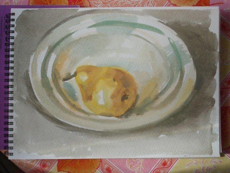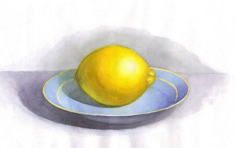 Фрукты на тарелке натюрморт акварелью