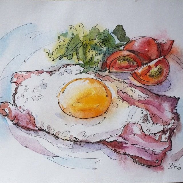 Фуд скетчинг маркерами яичница