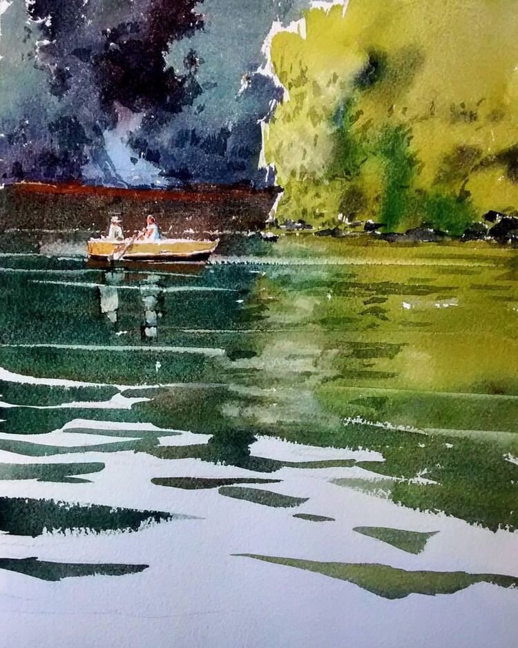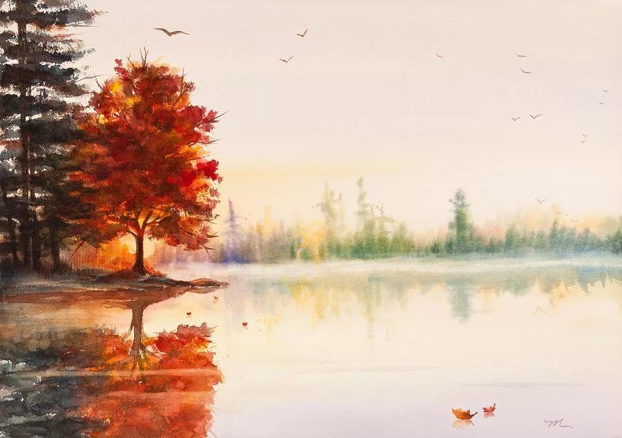 Озеро акварелью