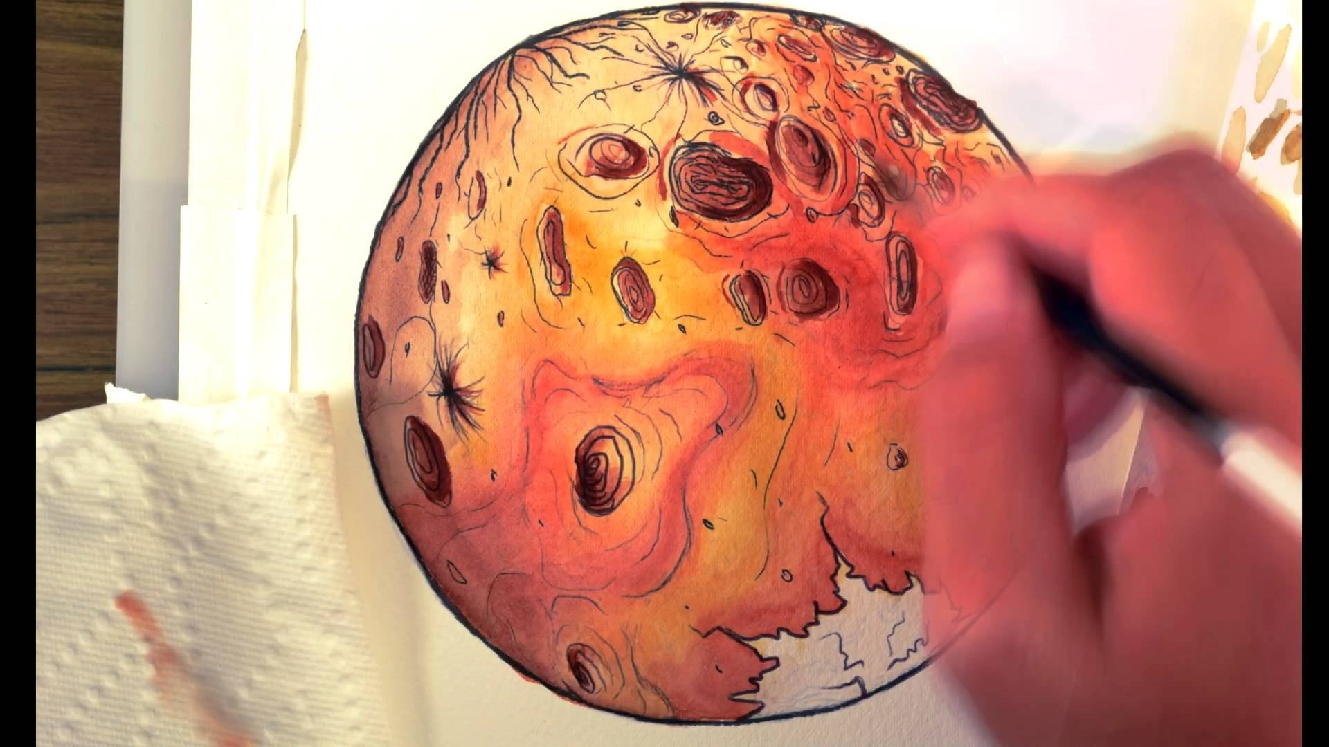 Марс Планета акварель