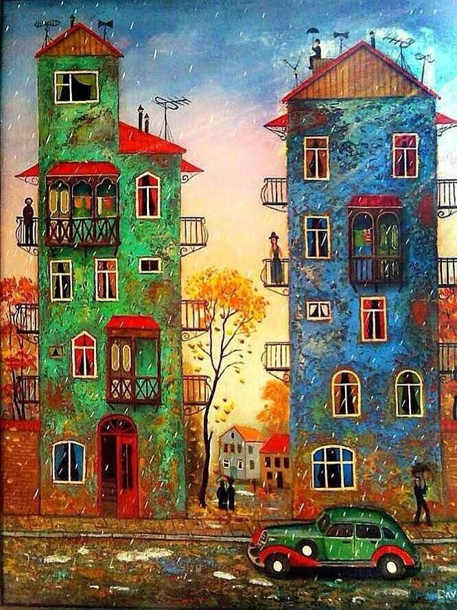 Цветные домики живопись