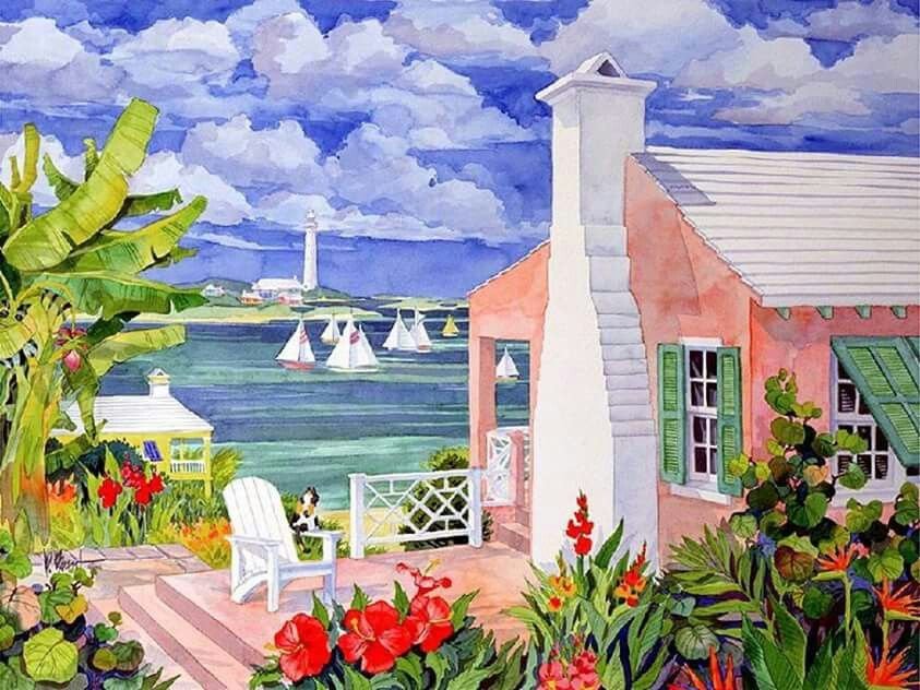Домик гуашью