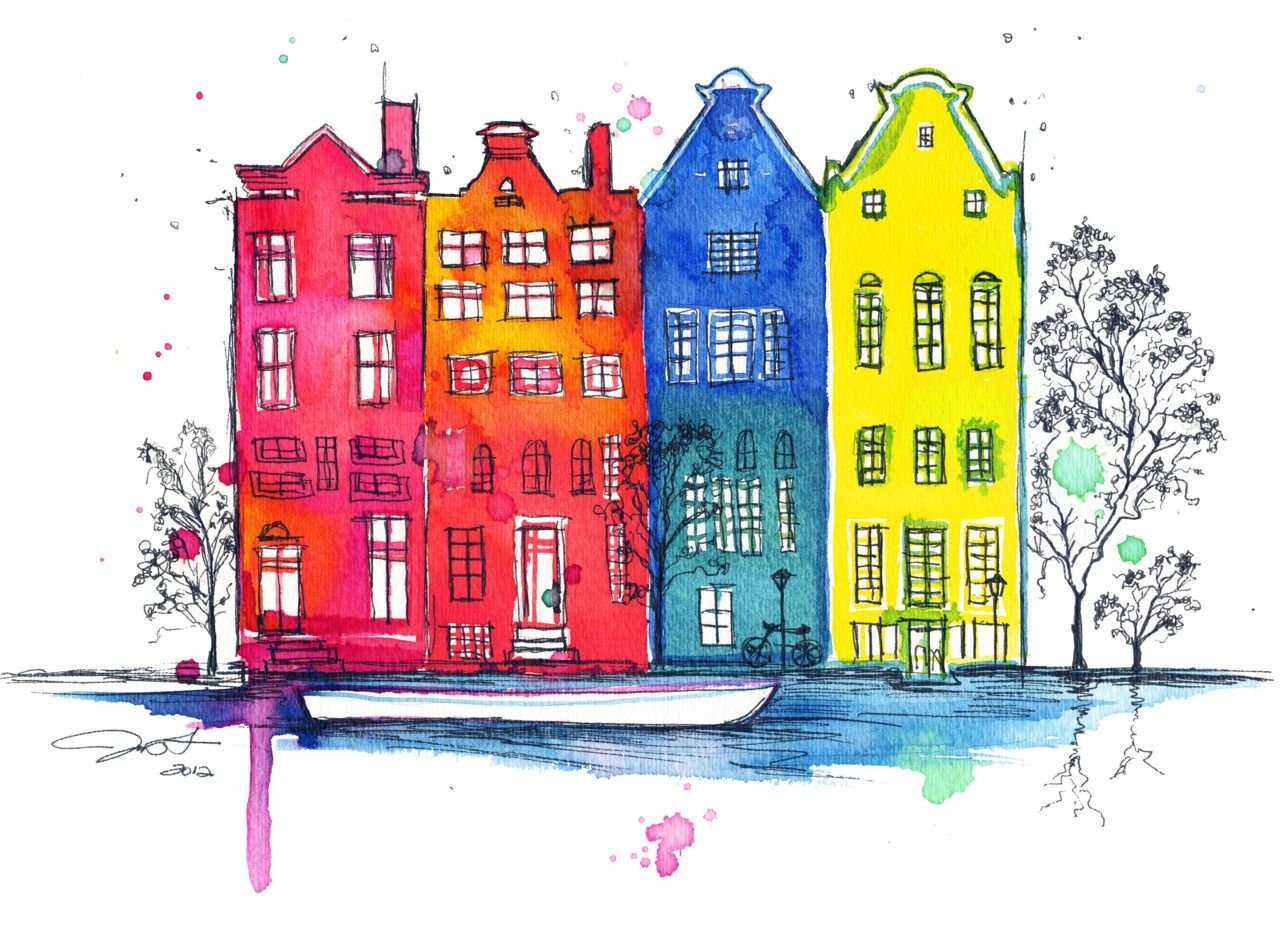 Фасады домов акварелью