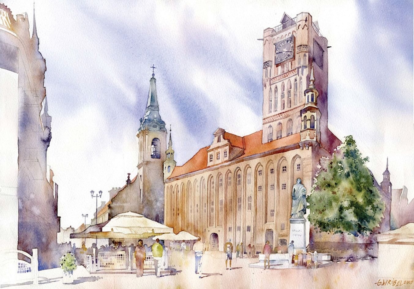 Рисунки акварелью город
