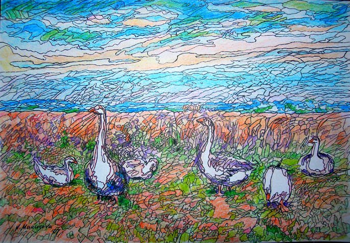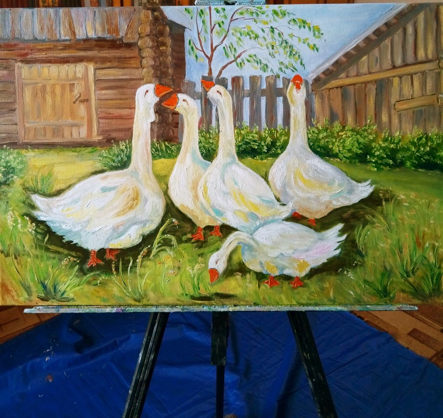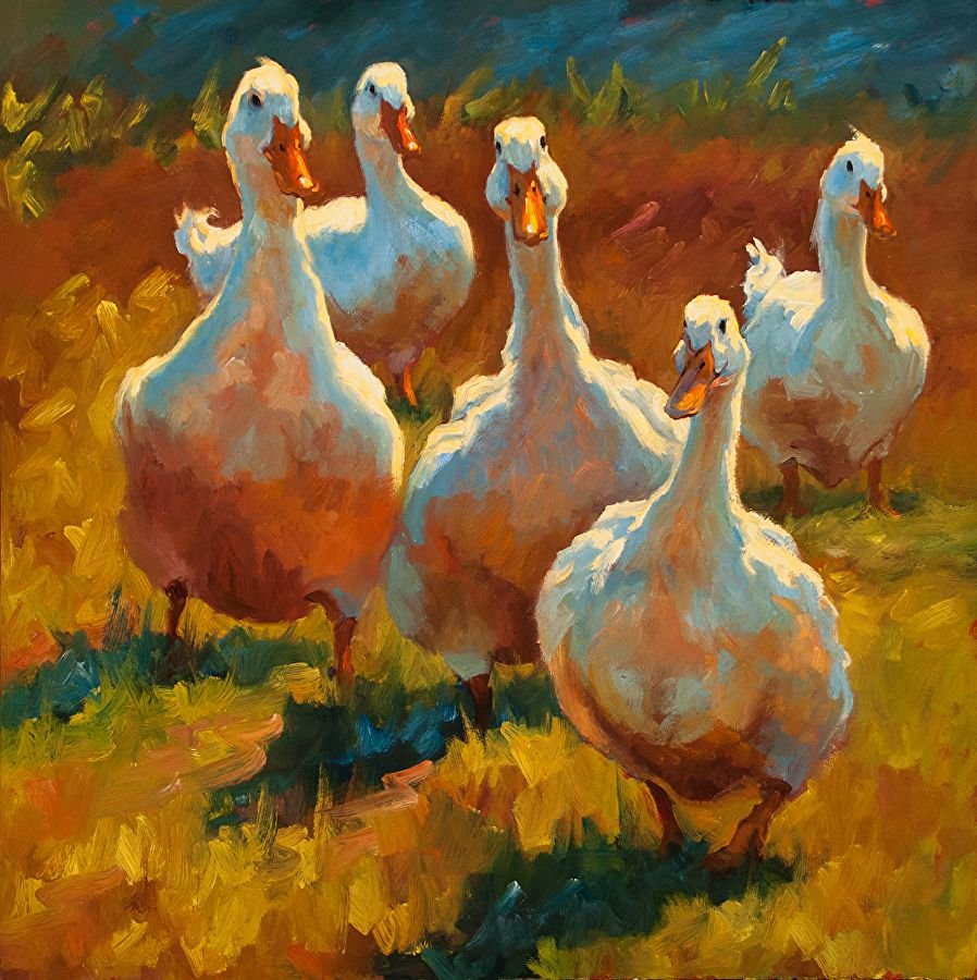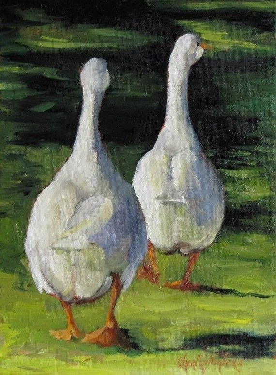 Гуси живопись маслом