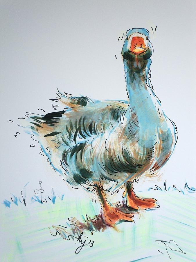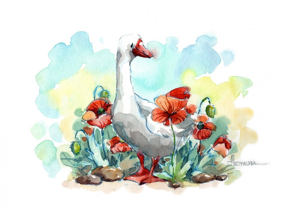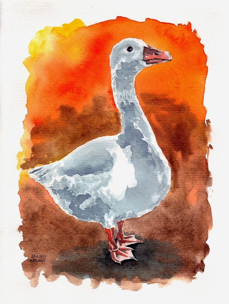 Гусь акварелью