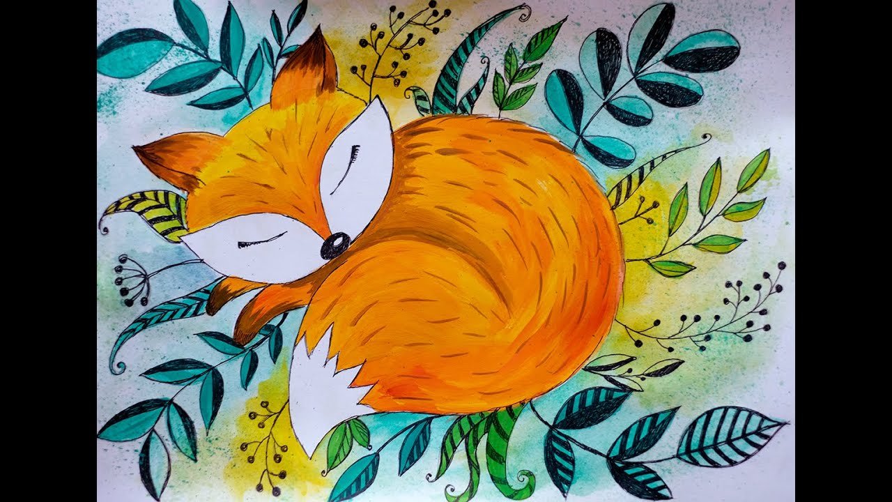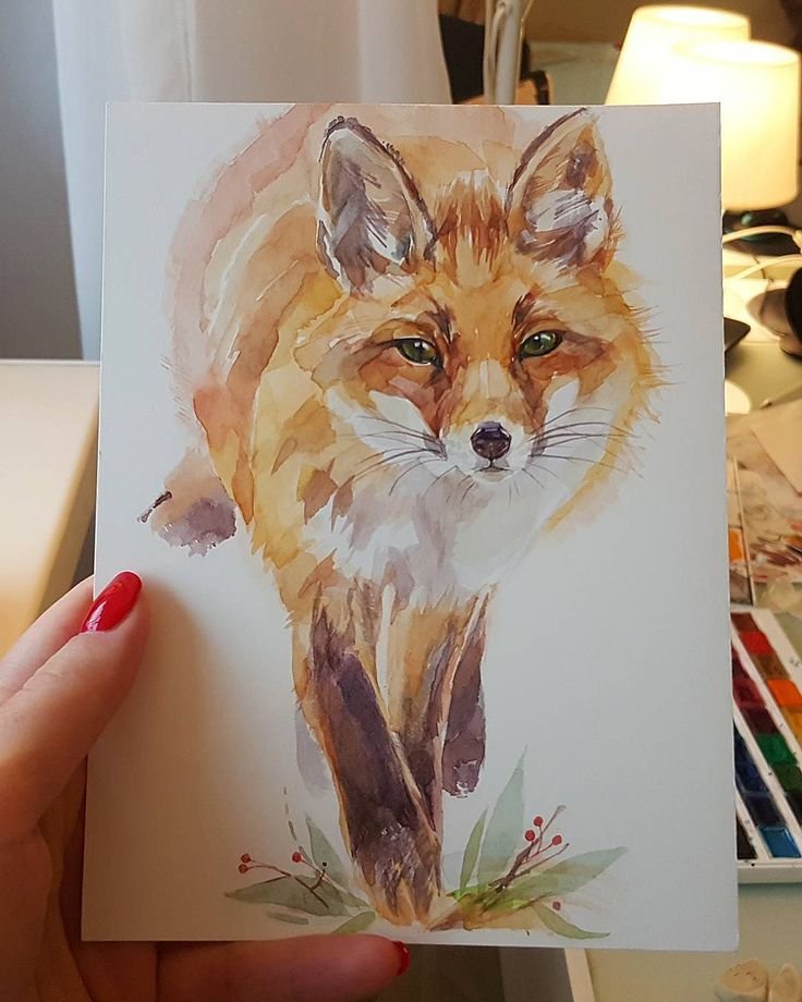 Лиса акварелью