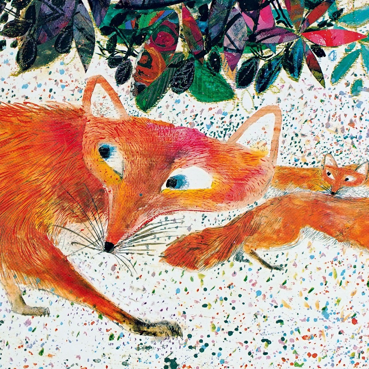 Лиса живопись с лисятами