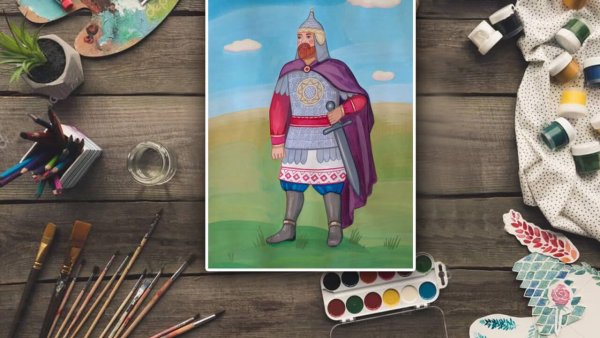 Портрет богатыря гуашь