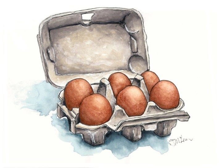 Яйца в корзине акварель