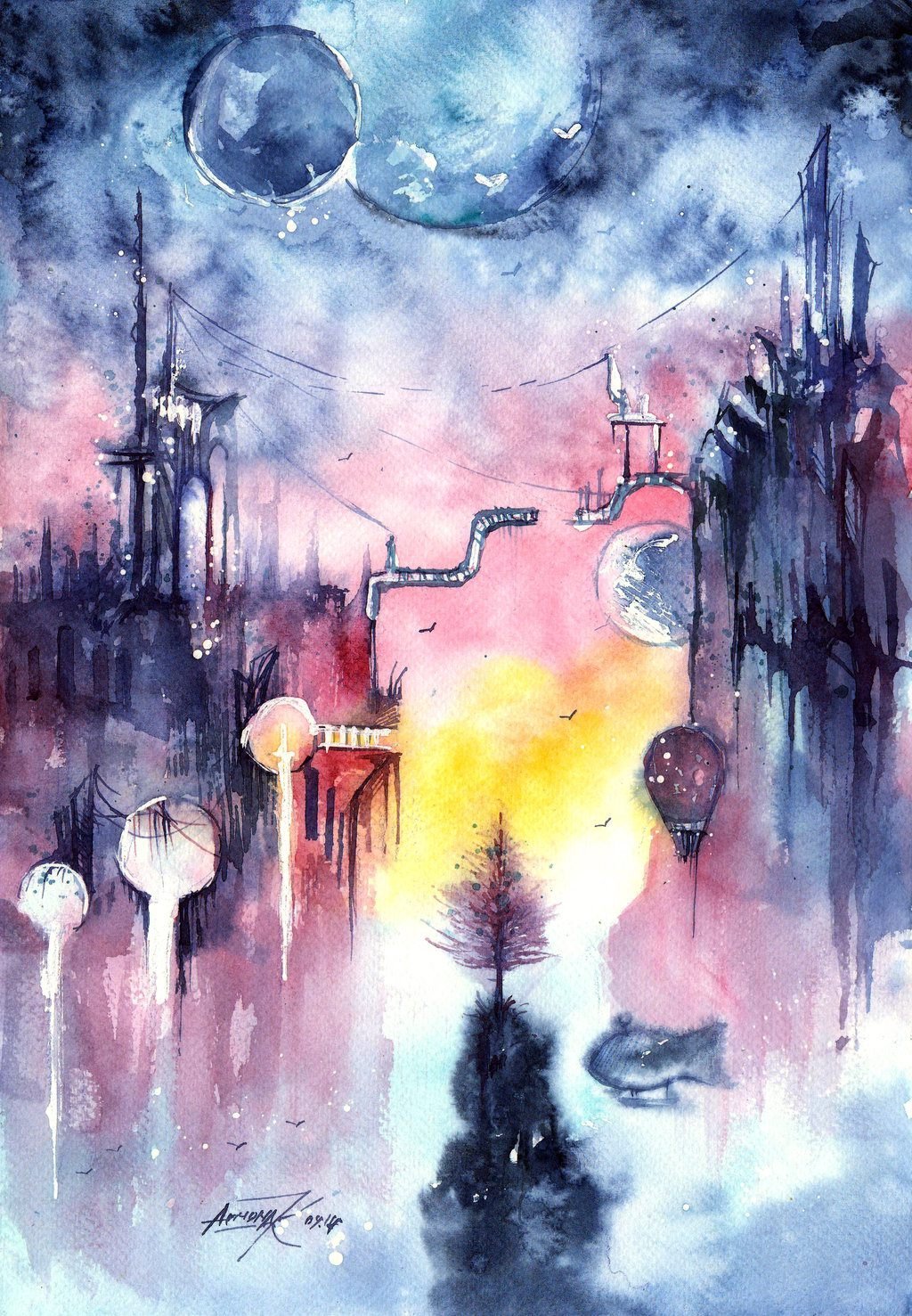 Фантастические пейзажи акварелью