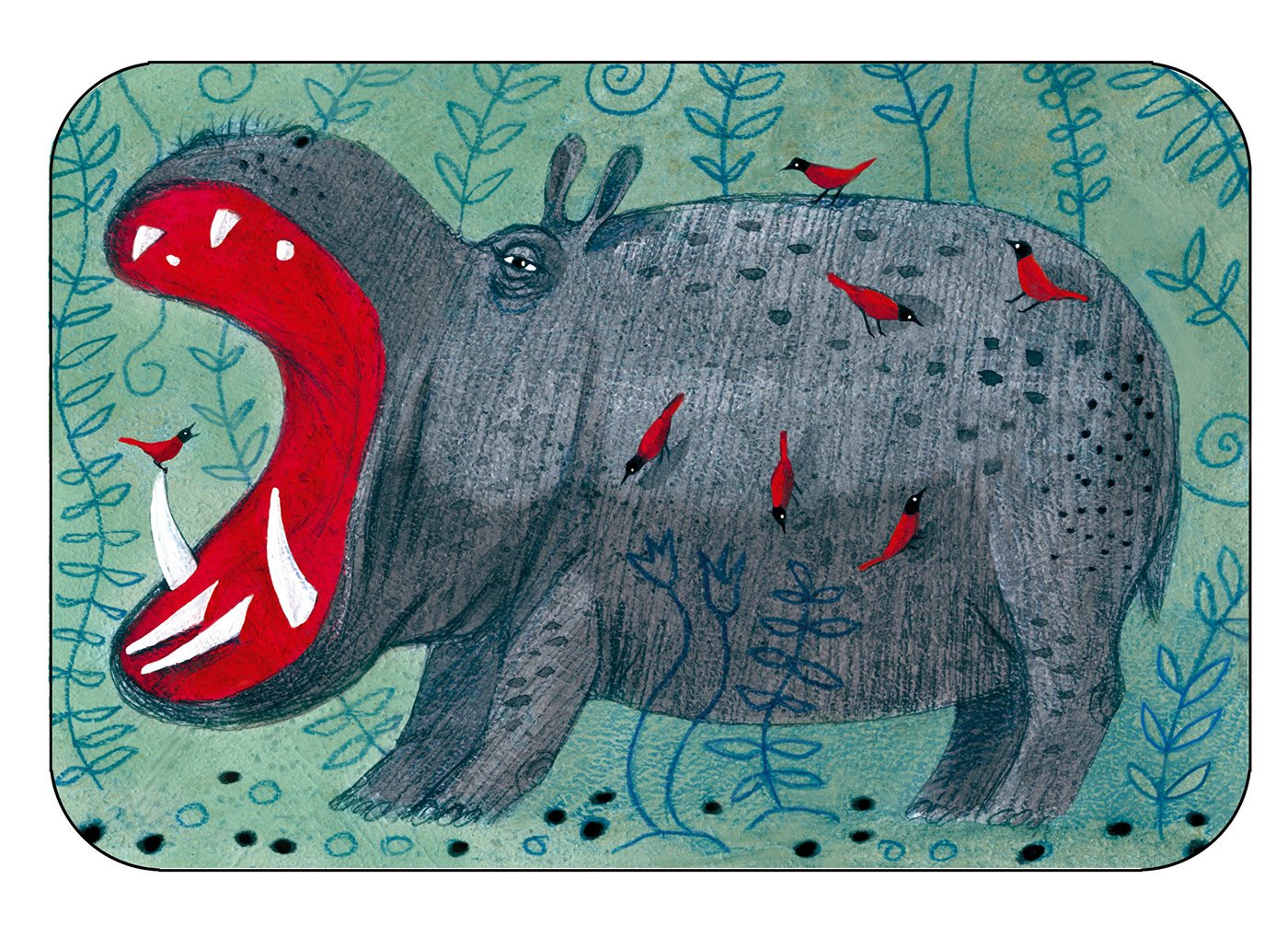 Бегемот гуашью