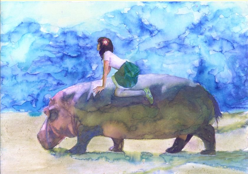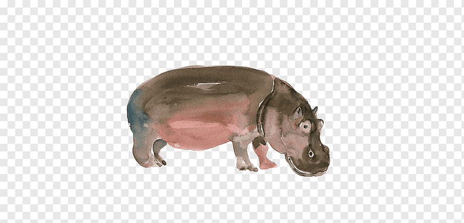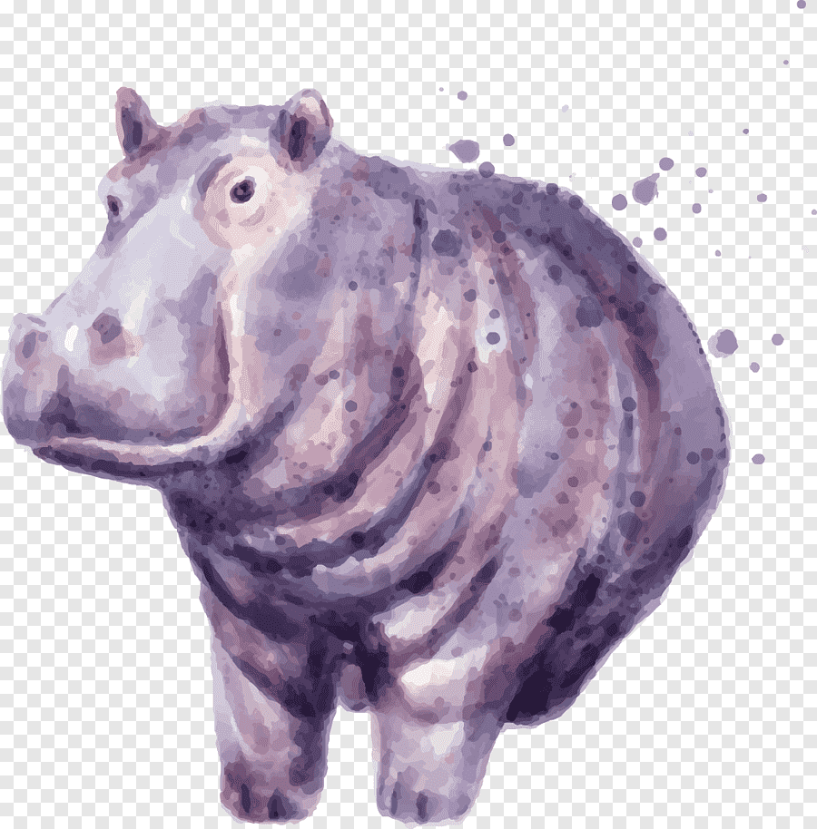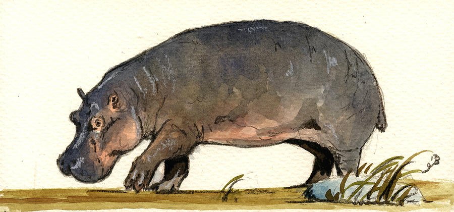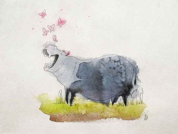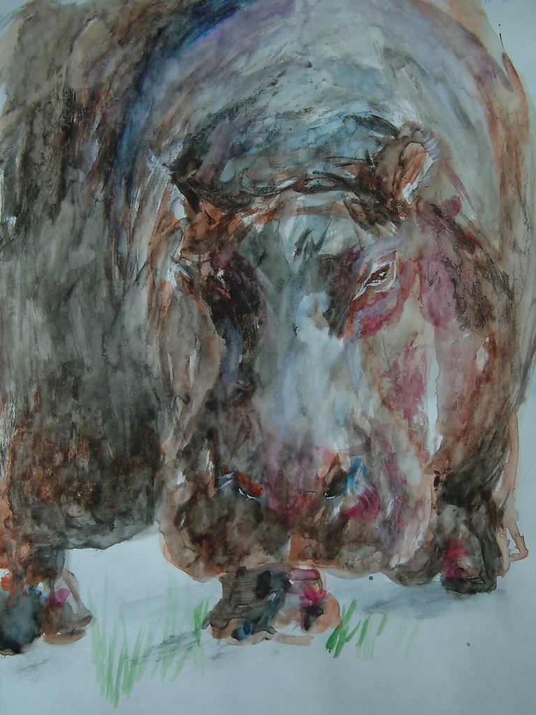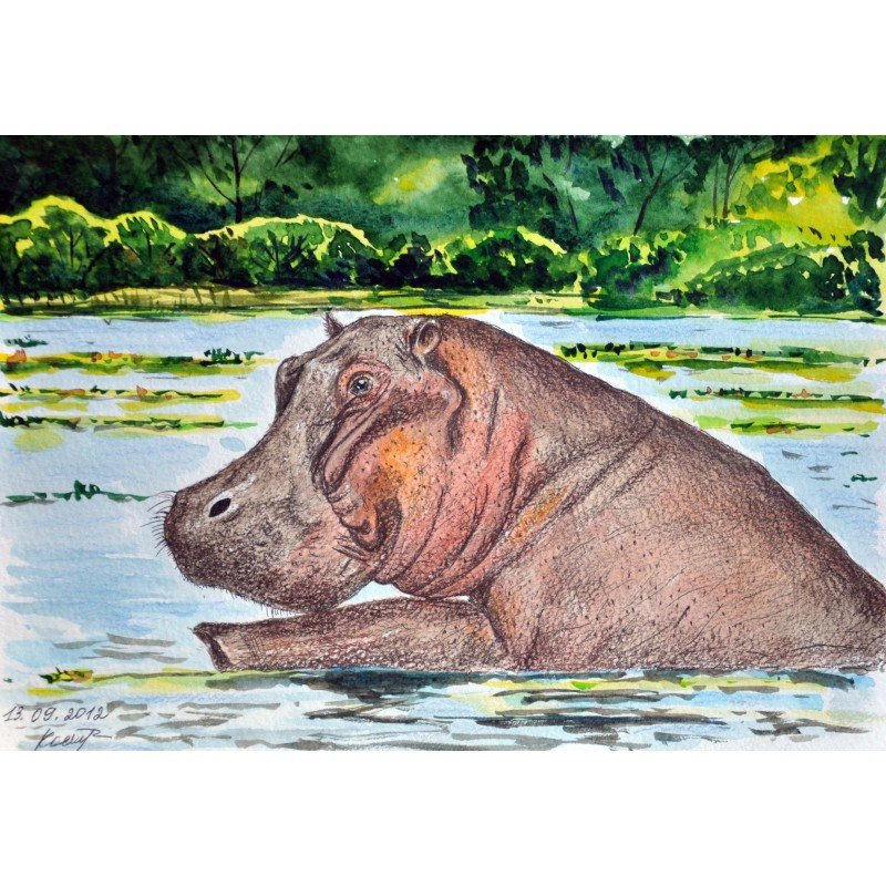 Бегемот акварелью