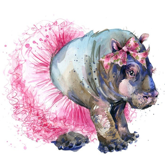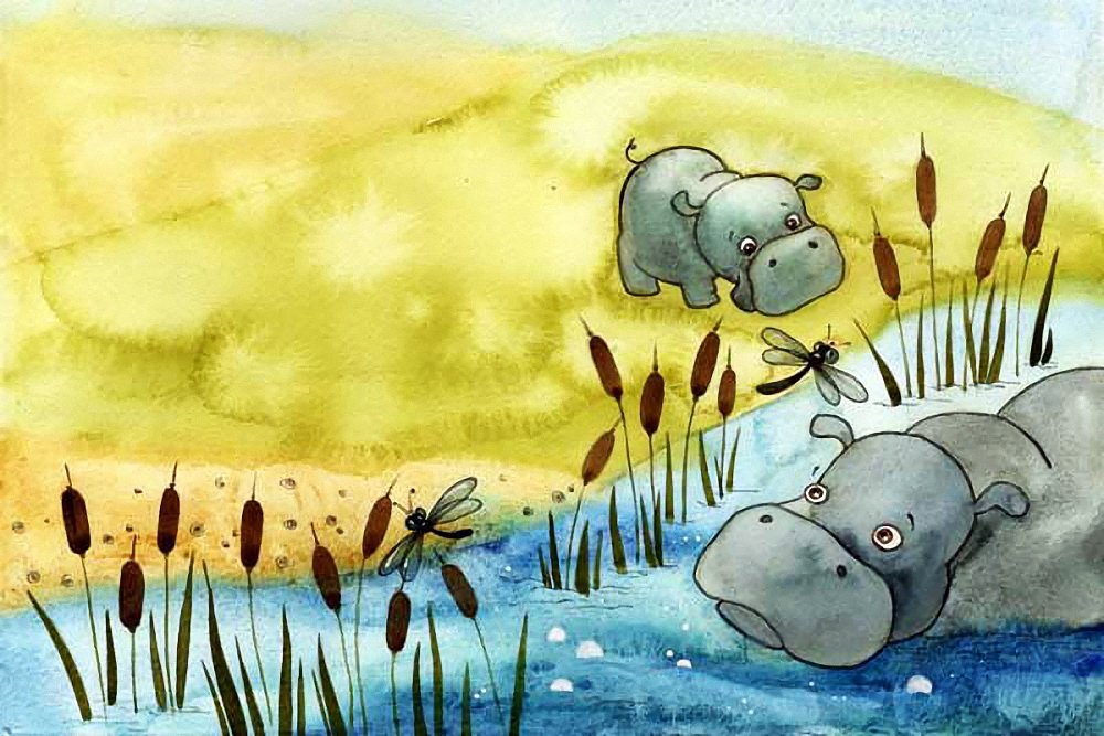 Бегемотик акварель