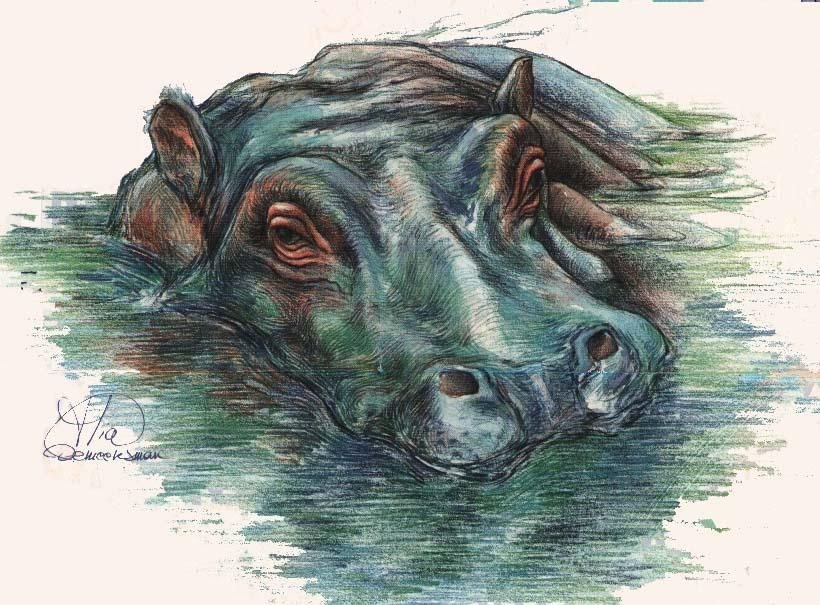 Африканский Бегемот акварель