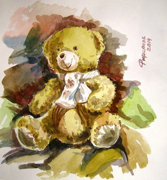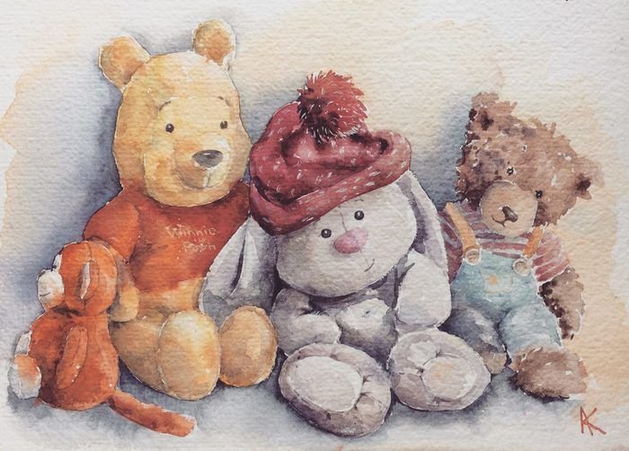 Плюшевые игрушки акварелью
