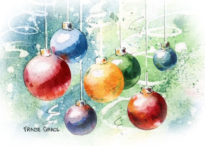 Елочные шары акварель