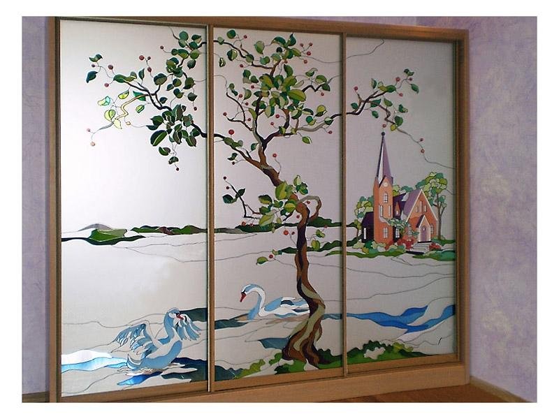 Роспись по зеркалу на шкаф
