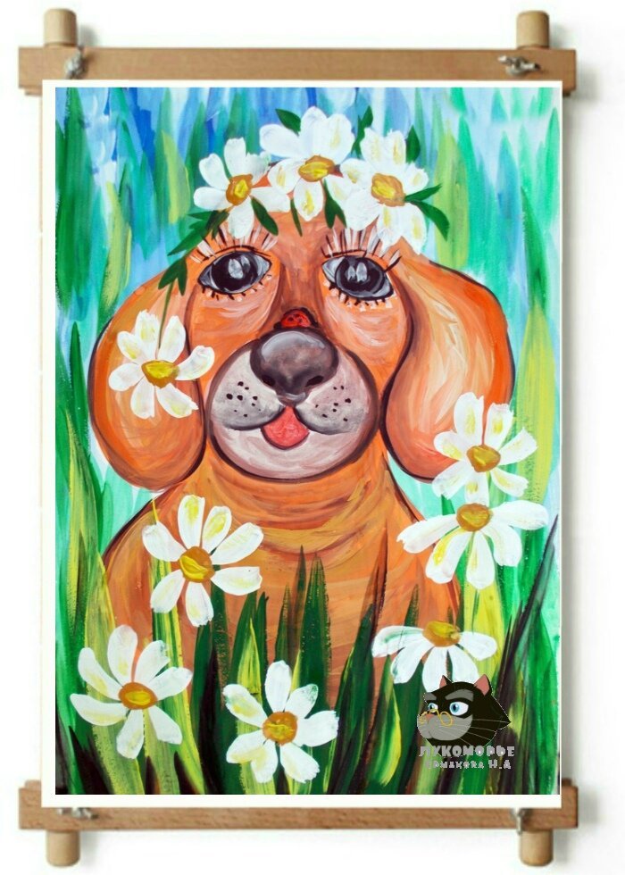 Собака цветы живопись