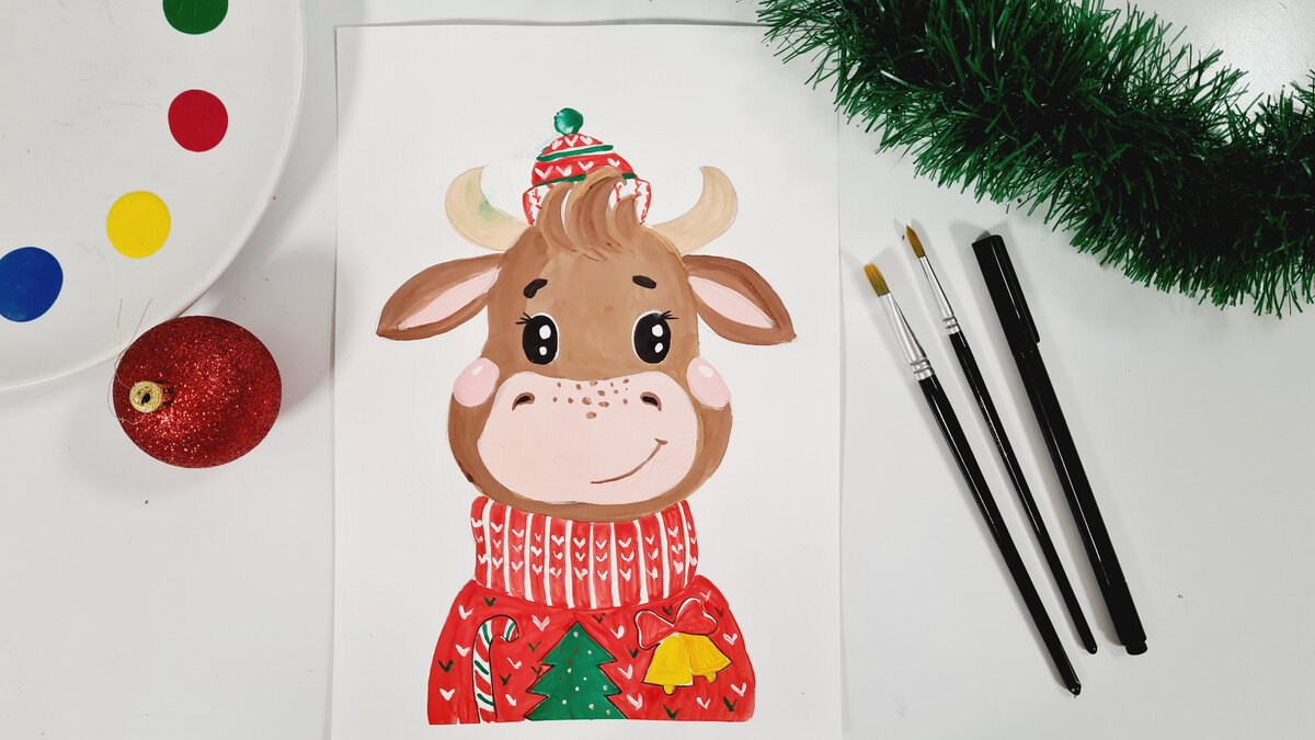 Погрузитесь в атмосферу праздника с нашим уникальным новогодним рисунком "Бычок гуашью". Этот яркий и красочный рисунок выполнен с использованием техники гуашь, что придает ему особую выразительность и живость. Отличный выбор для украшения интерьера во время новогодних праздников или прекрасный подарок для близких и друзей. Размеры рисунка позволят легко разместить его на стене или полке, добавляя веселья и радости в ваш дом. Приготовьтесь к волшебству Нового года с нашим новогодним рисунком "Бычок гуашью"!