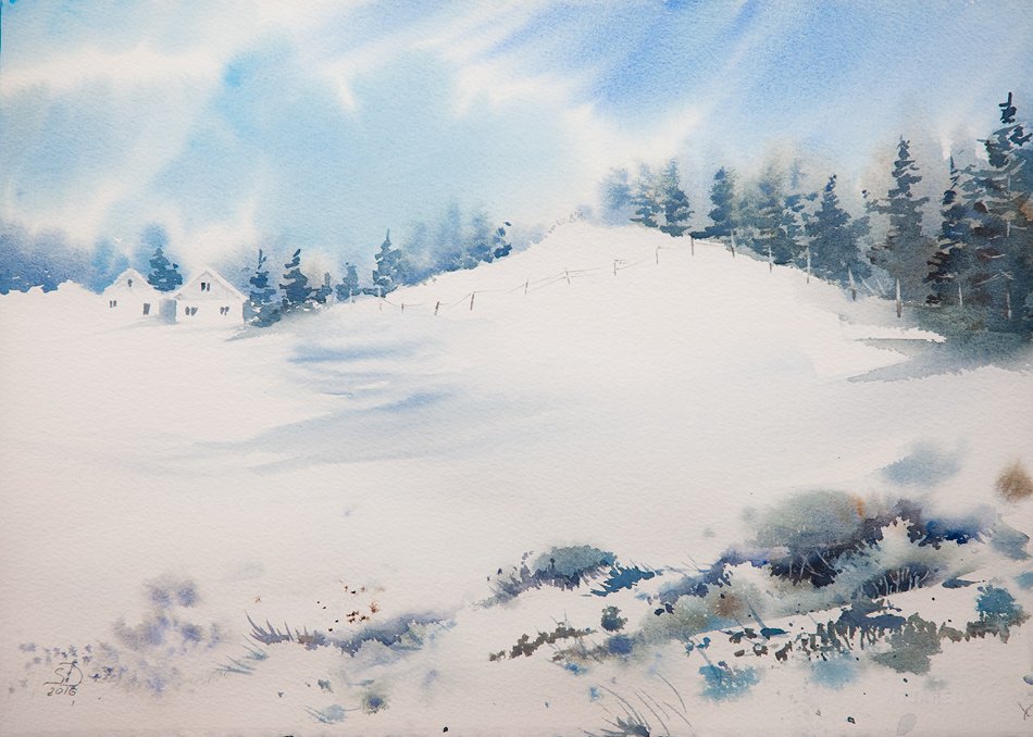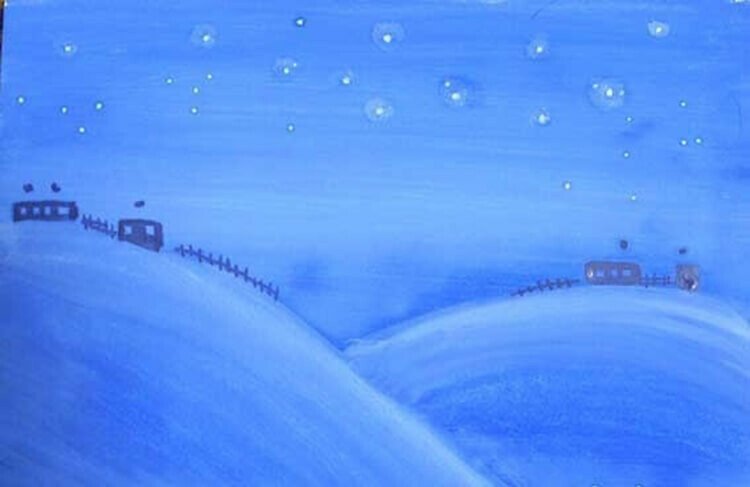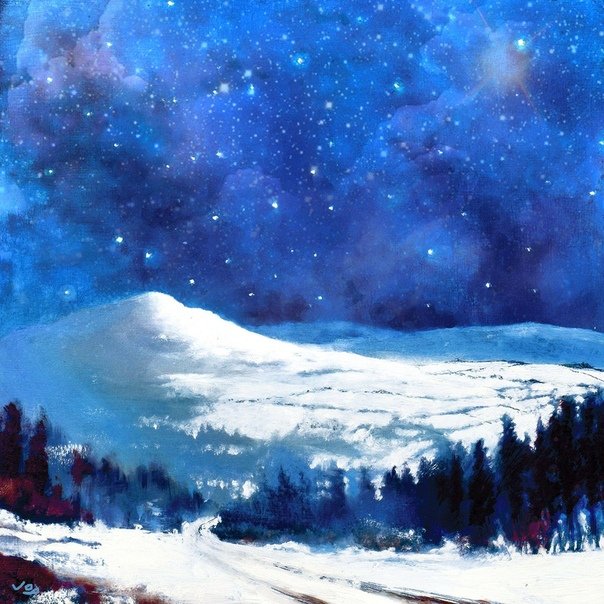 Зимнее небо - это волшебный рисунок, созданный мастерской рукой художника с помощью гуаши. Он захватывает взор своей неповторимой красотой и холодной атмосферой. Ледяные оттенки синего и фиолетового переплетаются в небесной панораме, создавая ощущение прохлады и таинственности. Искристые звезды, словно рассыпанные по холсту, добавляют дополнительную магию этому зимнему пейзажу. Весь рисунок пронизан атмосферой загадочности, вызывая у зрителя чувство умиротворения и восторга перед великолепием зимнего неба. Это идеальное произведение искусства, способное подарить эстетическое наслаждение каждому ценителю прекрасного.