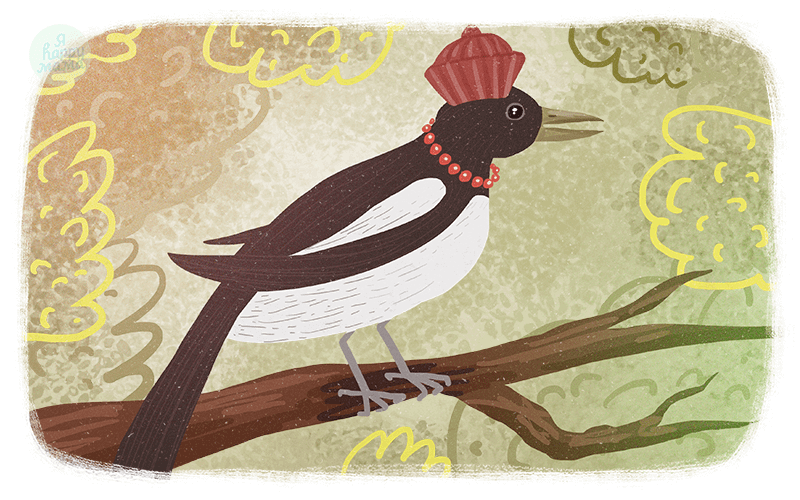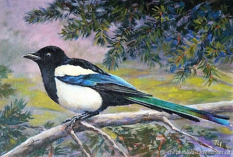 Сорока живопись гуашь