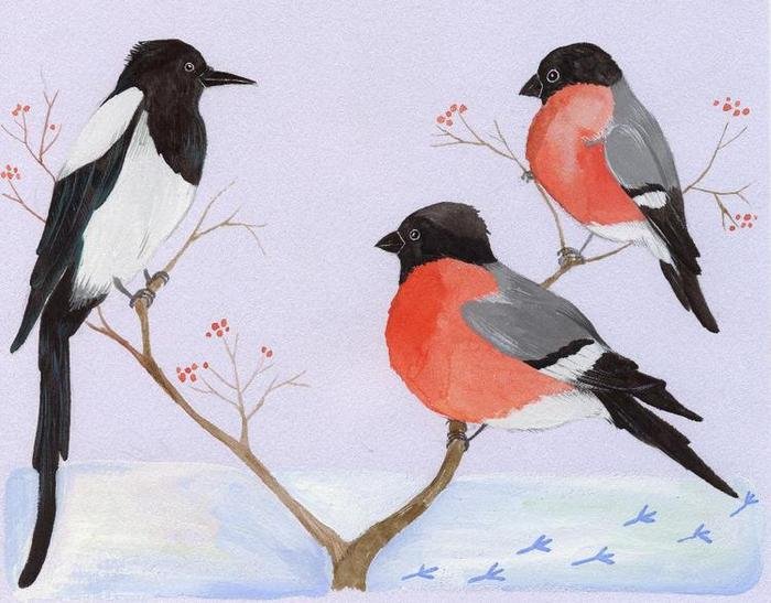 Птицы гуашью