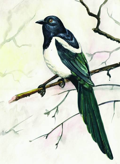 Сорока картина акварель