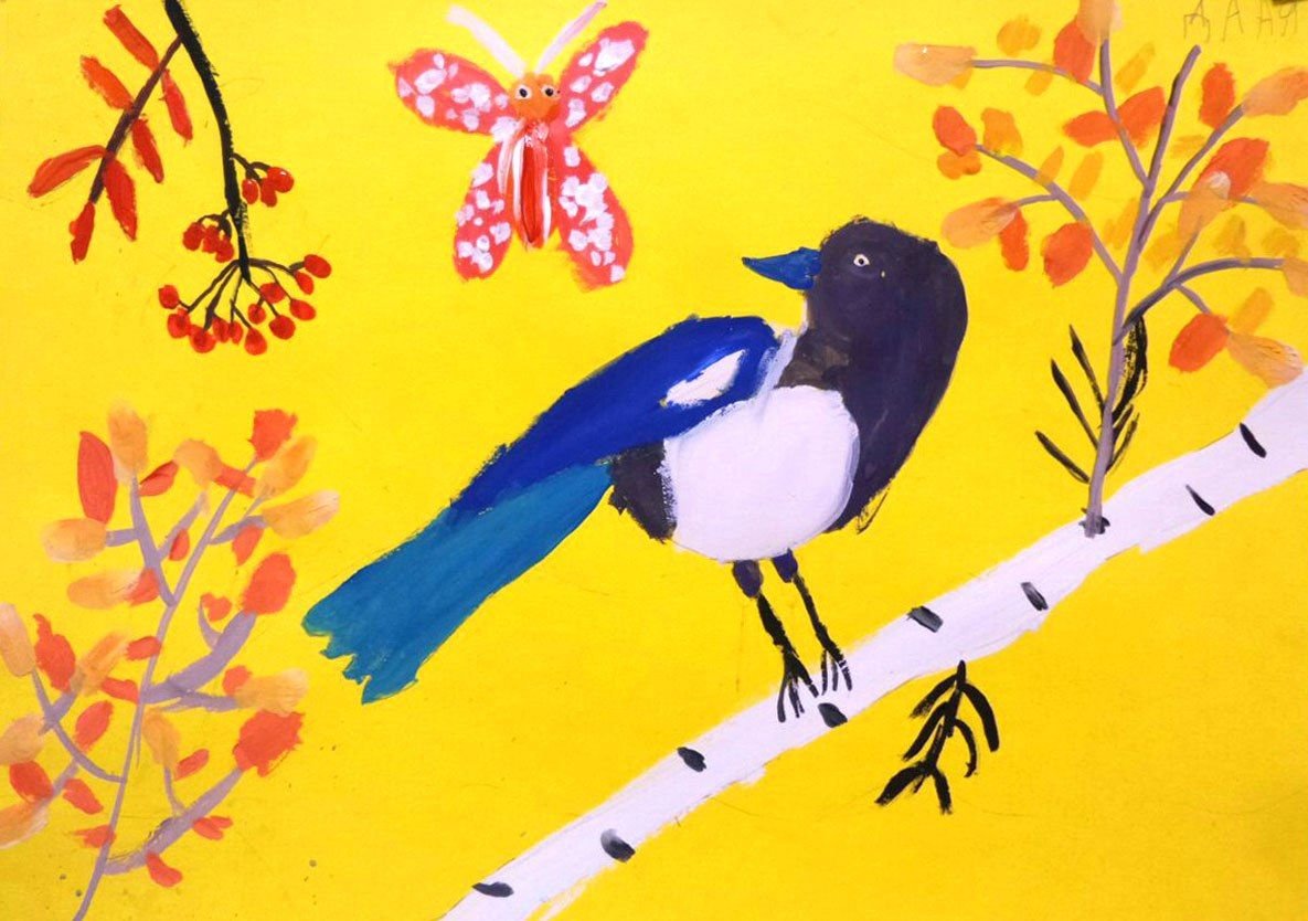 Сорока рисунок гуашью для детей