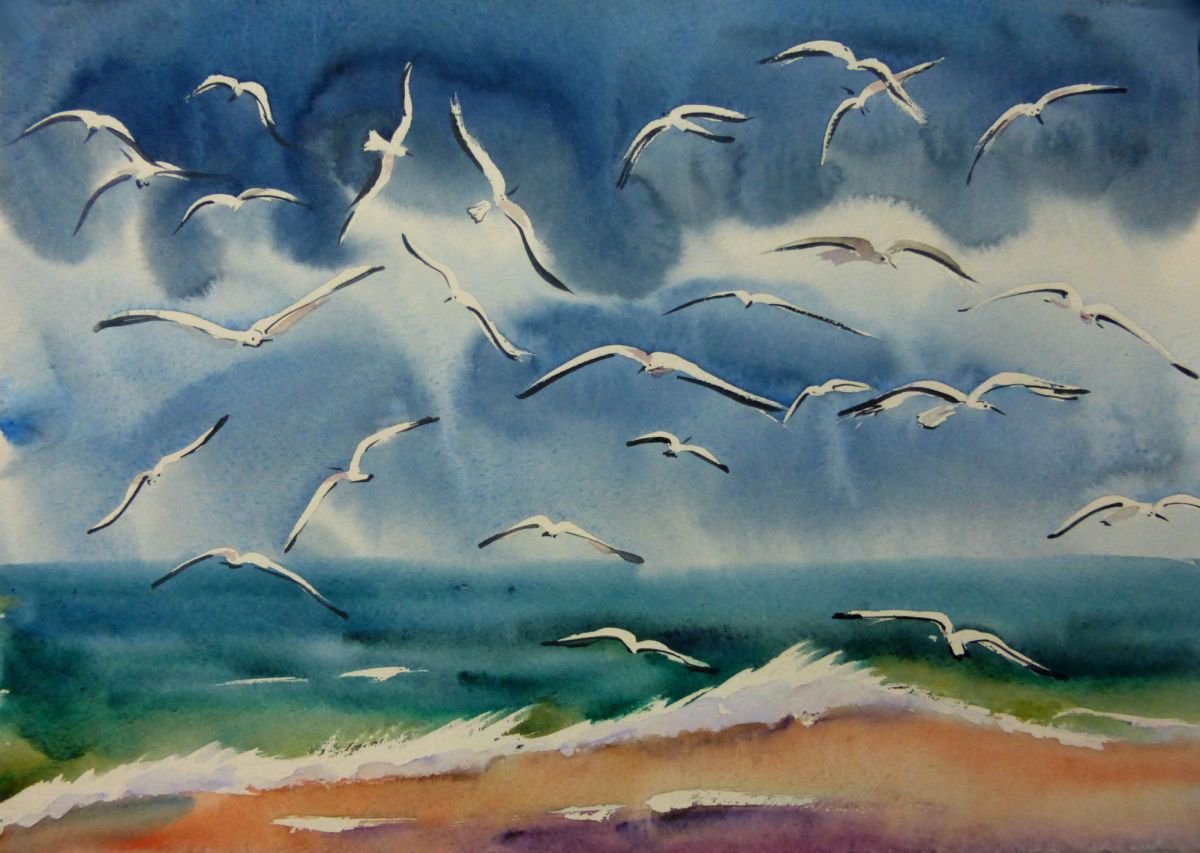 ![Чайки акварель]()