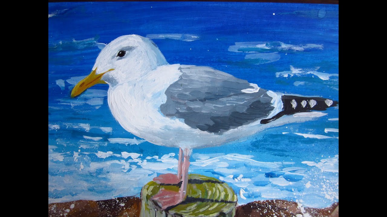![Нарисовать чайку гуашь]()