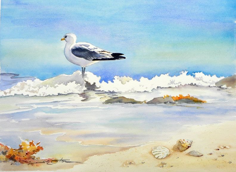 Чайка акварель