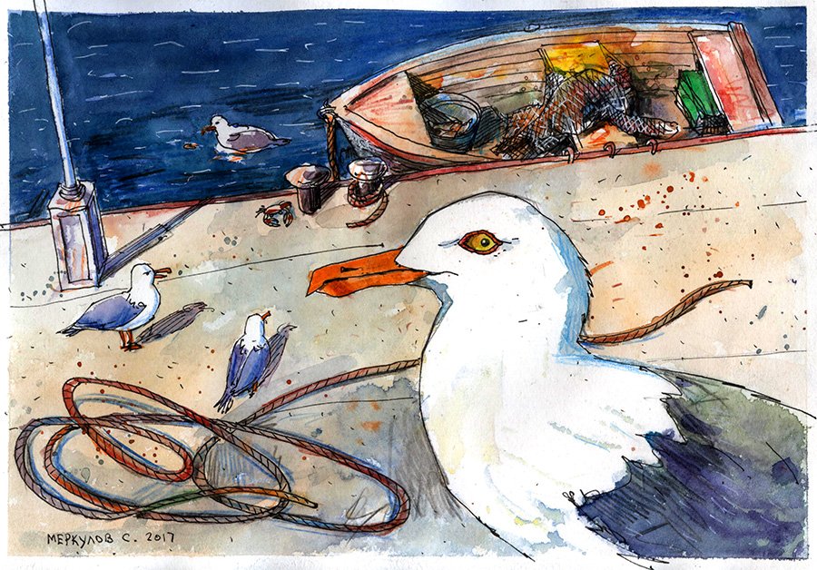 ![Чайка акварель]()